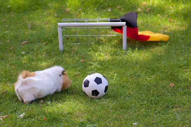 Beim Pfotenball bin ich für’s Anschleichen und die Freistoß-Vorbereitung zuständig.
